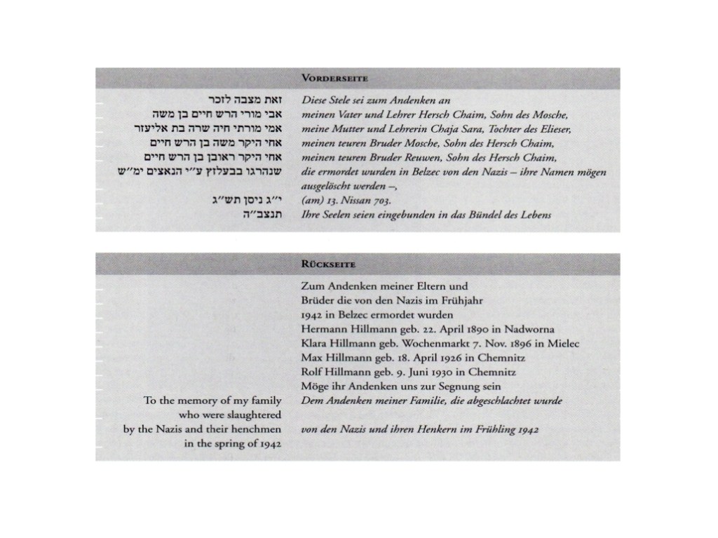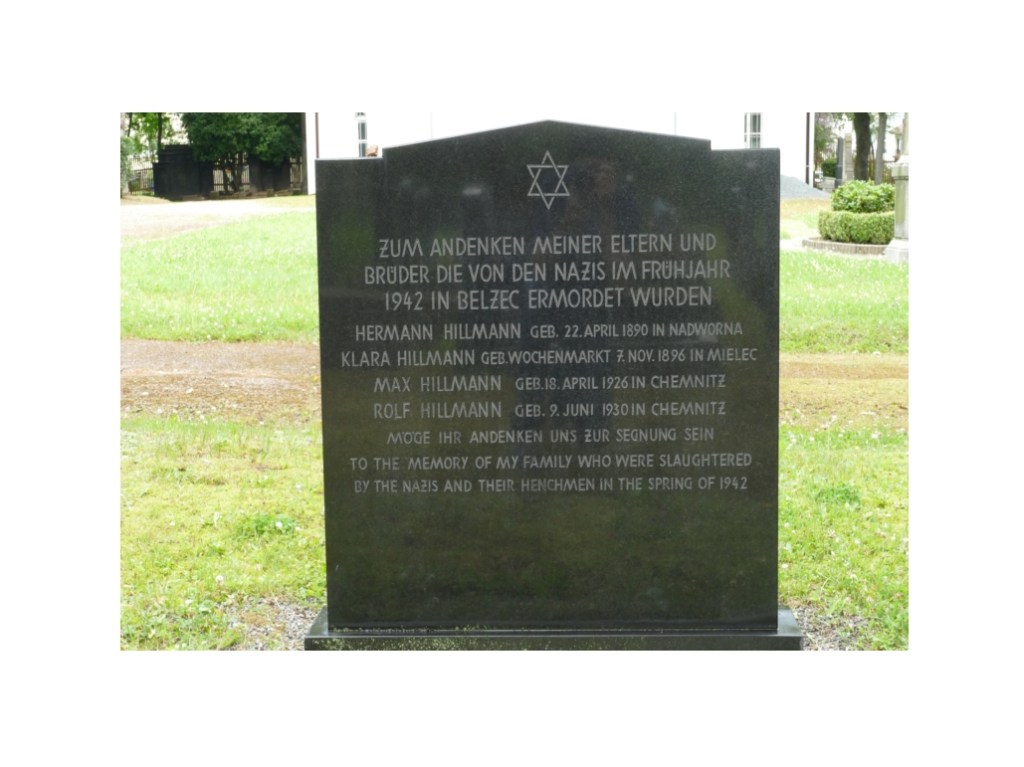 - Quellen: „Juden in Chemnitz“ Adolf Diamant S. 435, Fam. Hillmann S.437, Stele und Gedenkplatte S. 212, Fam. Mördler S.439.
