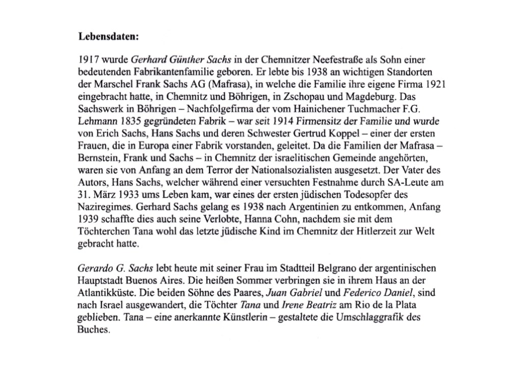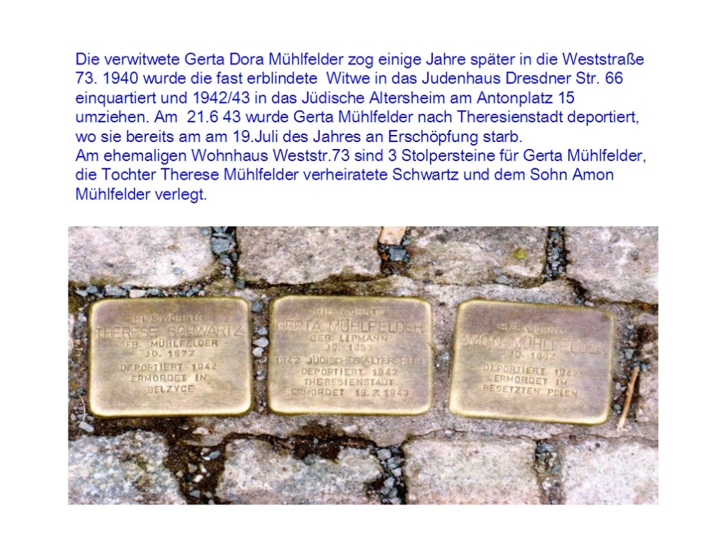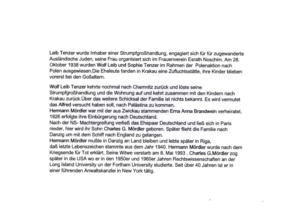 - Quellen: „Juden in Chemnitz „, Abraham Chotiner S.214, Jacob Mühlfelder S.221, Hugo und Rahel Fuchs S. 216