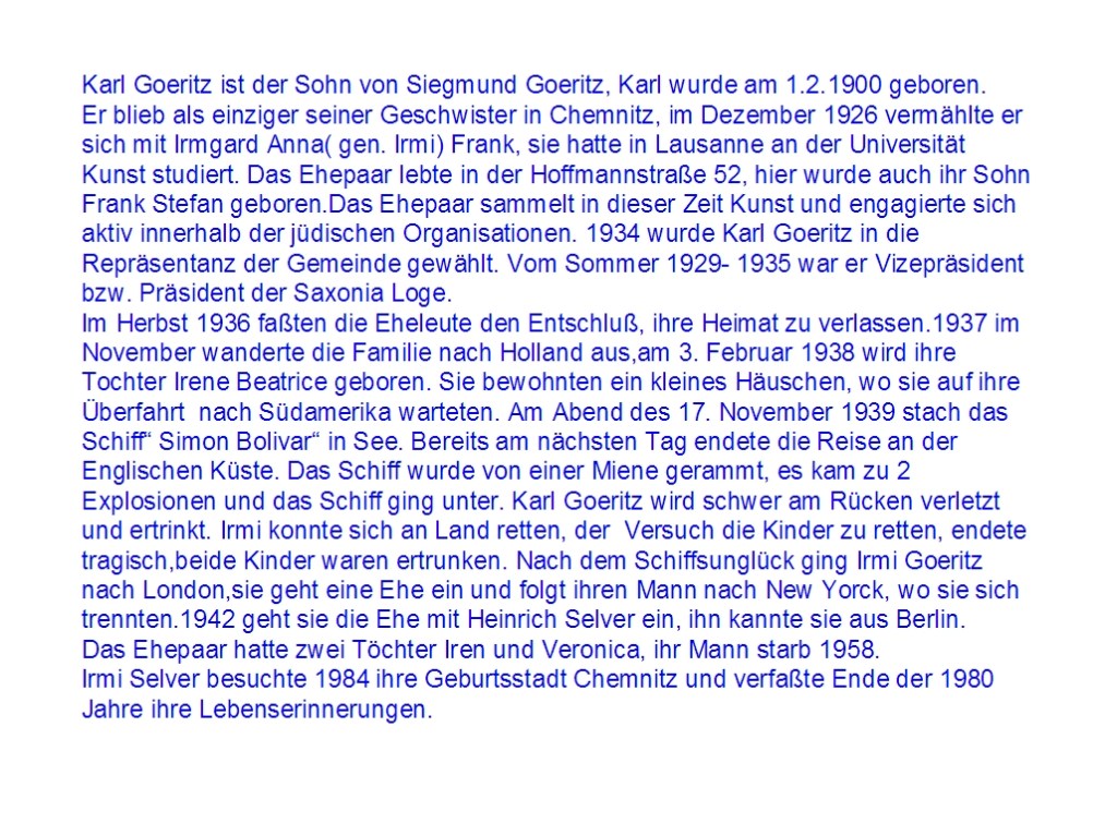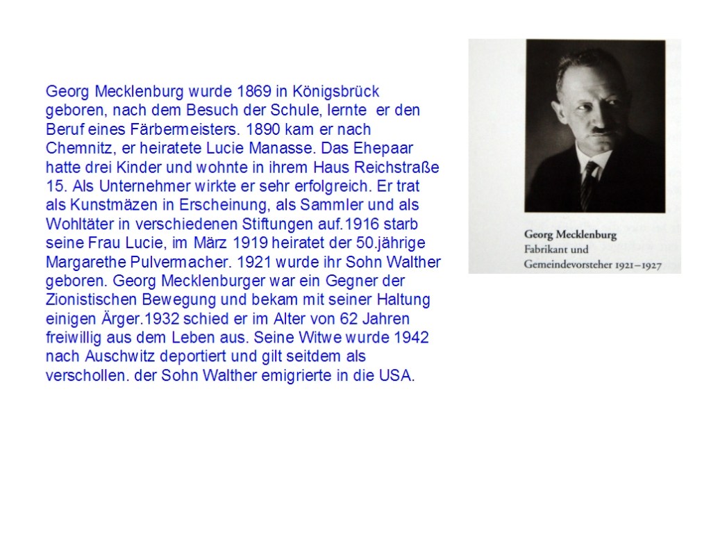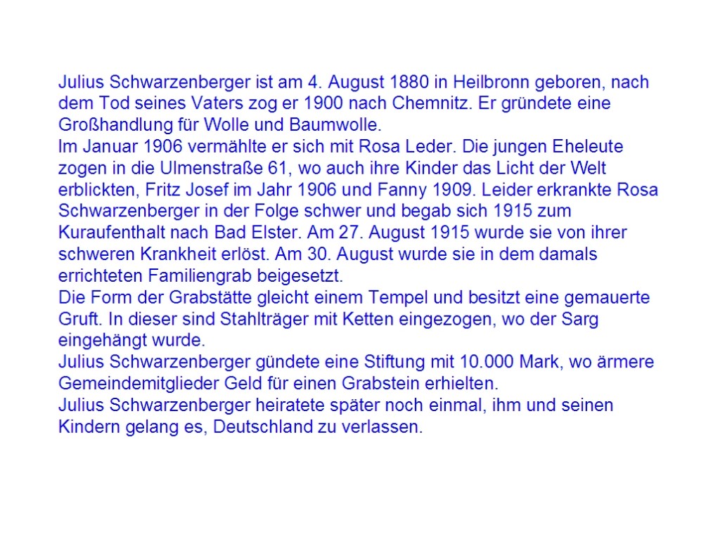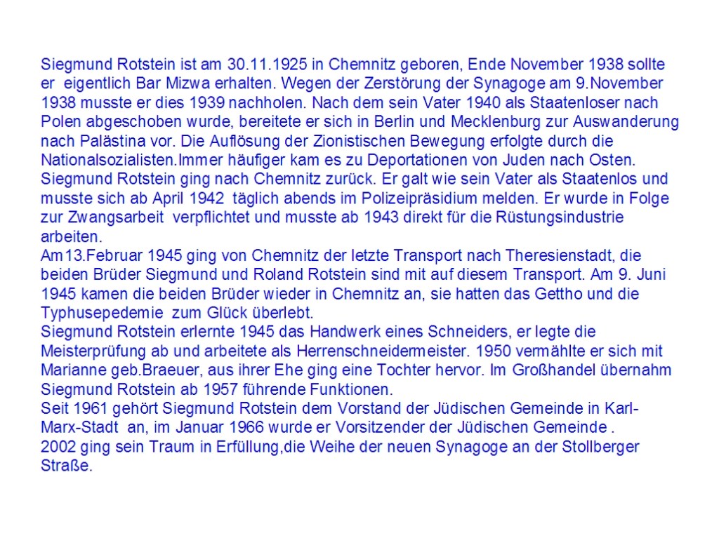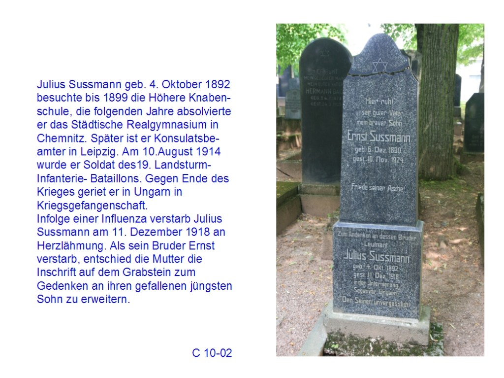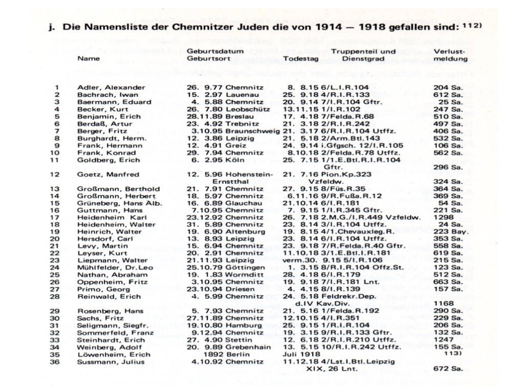 - Quellen: „Chronik der Juden in Chemnitz“ S. 61-65; „Juden in Chemnitz“ Kriegsgräber