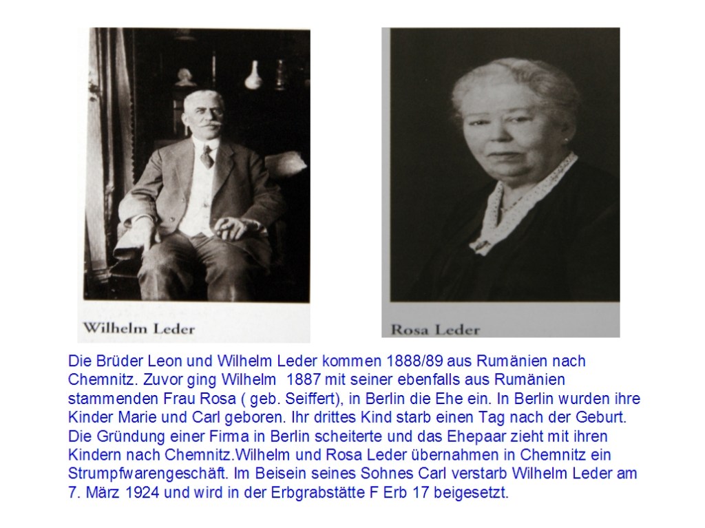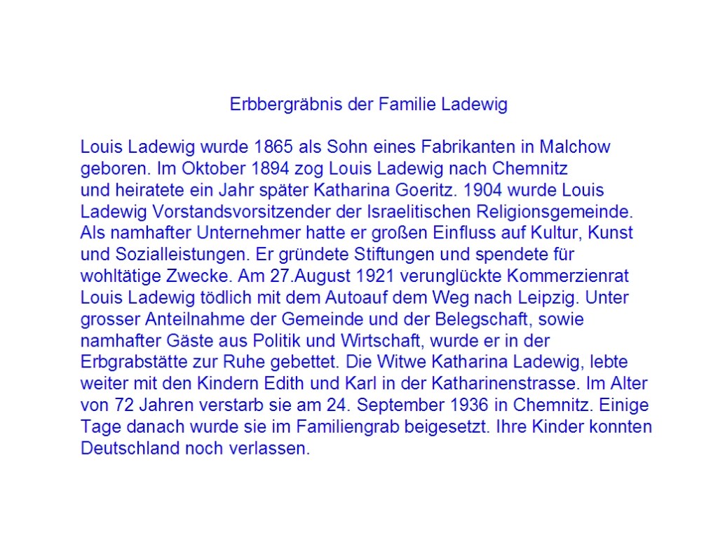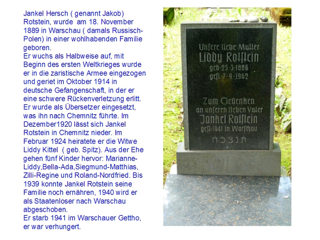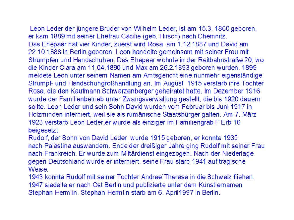 - Quellen: „Juden in Chemnitz“ Frau Schwarzenberger S. 423, Fam. Ladewig S.396, Fam. Leder S. 398, 399, Fam. Jankel Rotstein S.308, Fam. Sigmund Rotstein S.161