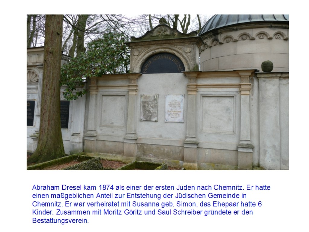 Quellenangaben: „Juden in Chemnitz“ Herausgeber Dr. Jürgen Nitsche, Dr. Ruth Röcher , Jüdische Gemeinde Chemnitz , Sandstein Verlag; “ Chronik der Juden in Chemnitz“ Adolf Diamant; „Spurensuche, Jüdische Mitbürger, in Chemnitz“ Stadtarchiv Chemnitz; Epigrafik Salomon Ludwig Steinheim Institut Essen.